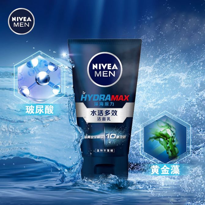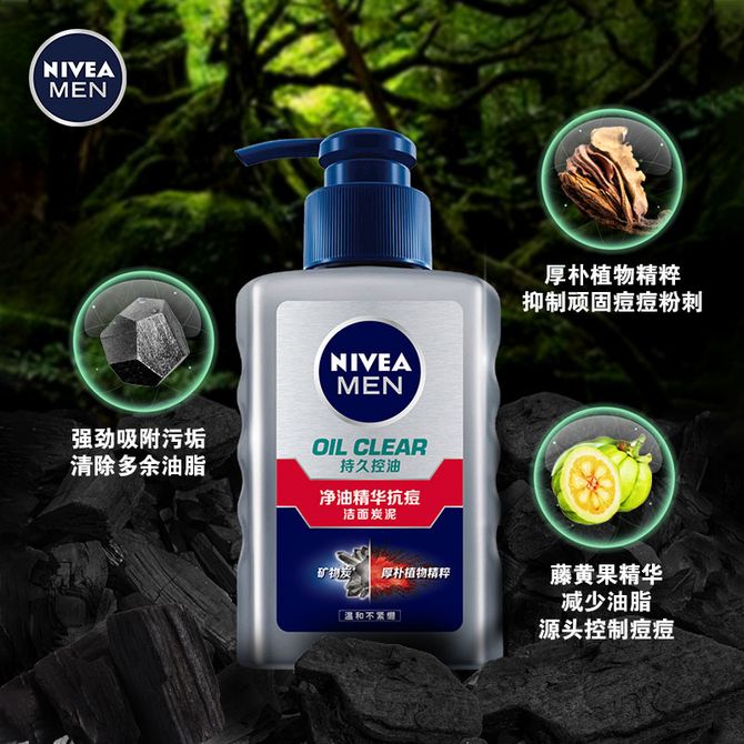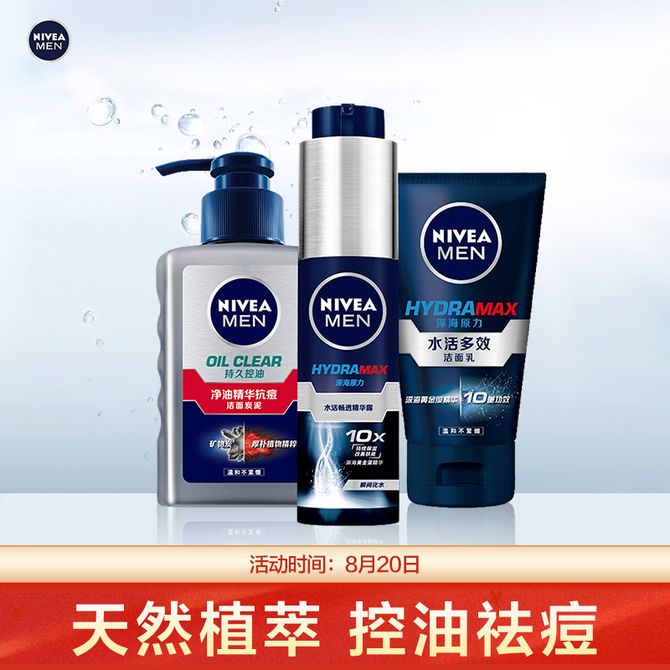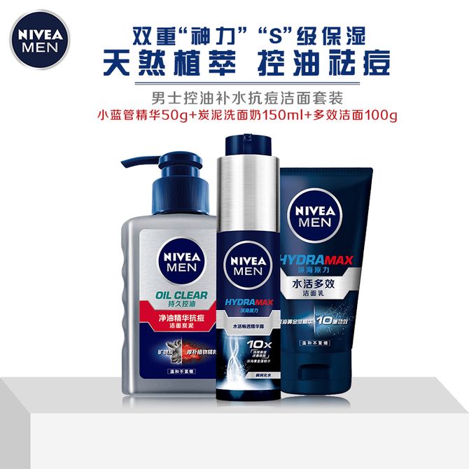妮维雅(NIVEA) 男士护肤洁面控油补水抗痘套装 护肤润肤露洗面奶组合(小蓝管50g+炭泥洗面奶150ml+多效洁面100g)