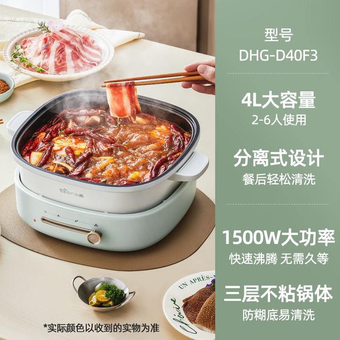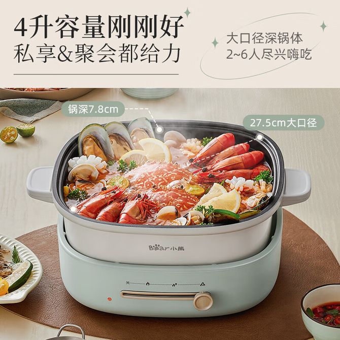 小熊(Bear)电火锅家用多功能料理锅分体式电煮锅电热锅涮锅不粘涂电炒锅电煎锅无极调温4L 蓝色 4L分体式电火锅,三层加厚锅体!1500W大功率!涮煮焖炖煎烤! 兑换价格 8700 里程 会员卡别 终身白金卡 白金卡 金卡 银卡 普通卡 儿童卡 商品已下架 1. 请联系卖家咨询 2. 逛逛北京致诚博雅贸易有限公司选择其他商品 组合销售 产品介绍 产品规格 售后服务 产品咨询 发现好货 苏泊尔(SUPOR)空气炸锅 家用多功能4.2L大容量 烤箱薯条机 无油烟电炸锅 大功率 无油低脂煎炸锅KJ42D811 7800 里程 美的/Midea 空气炸锅 家用5升可视炸锅金属内腔体微蒸汽多功能智能双旋控温电炸锅 KZE5089 10900 里程 奥克斯/AUX 空气炸锅5L电炸锅多功能大容量无油电炸锅空气炸锅机械款 4.5L 机械款 AUX-3002M 复古绿 6500 里程 奥克斯 电火锅 电炒锅 电煮锅 火锅锅 电锅一体锅 家用多功能料理烤肉电热锅 多用途锅大容量 无笼款 5L 4800 里程 苏泊尔(SUPOR)多功能锅料理锅电火锅多用途电煮锅不粘电热锅家用电炒锅方形烤盘煎烤锅JD3424D08-150 YL 13000 里程