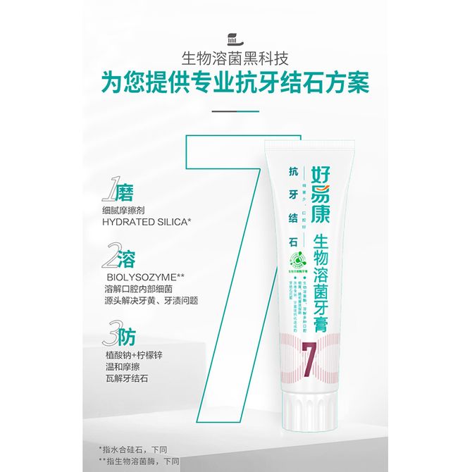 好易康溶菌酶牙膏7号(120g)*2支抗牙结石溶解牙渍去牙垢牙黄口气清新