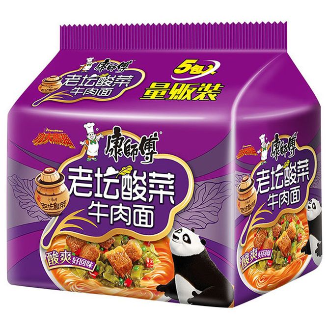 康师傅方便面老坛酸菜牛肉面袋面泡面五连包