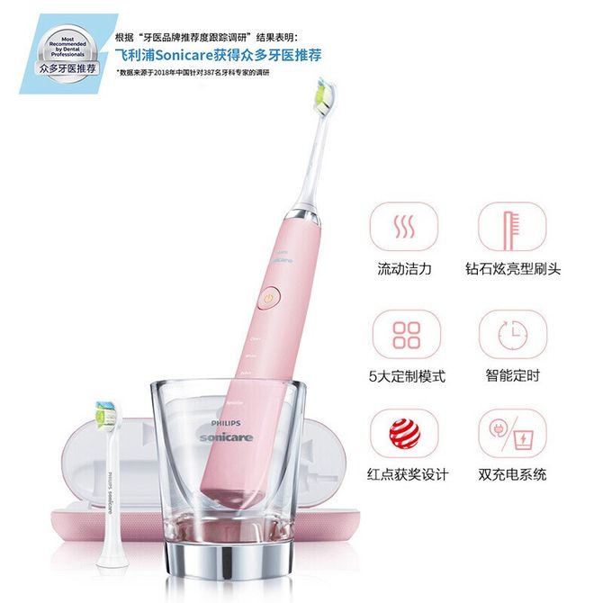 飞利浦(PHILIPS) 电动牙刷 钻石系列 粉钻HX9362/67