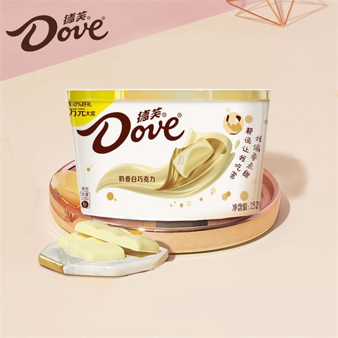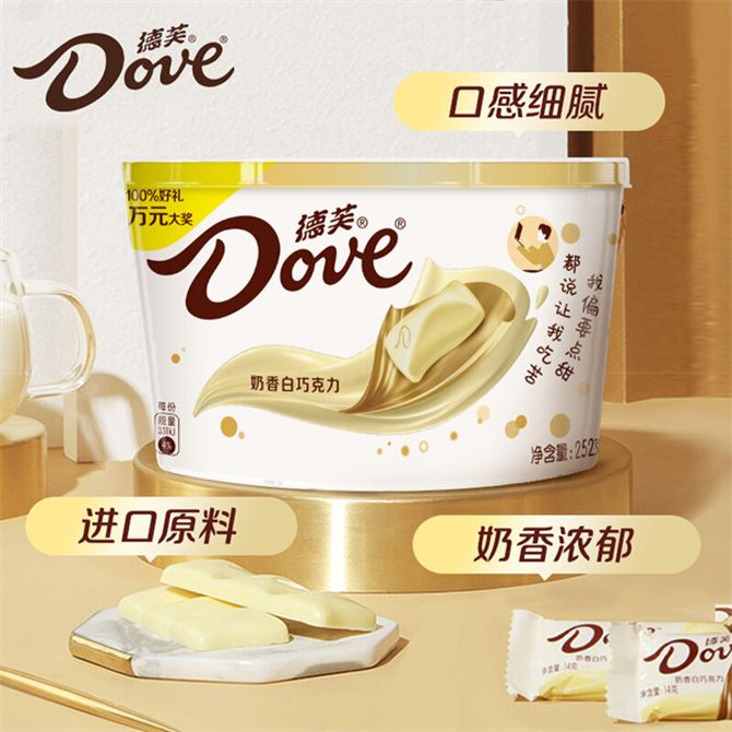 德芙Dove奶香白巧克力零食分享碗装 办公室员工下午茶休闲零食 婚庆糖果巧克力 252g