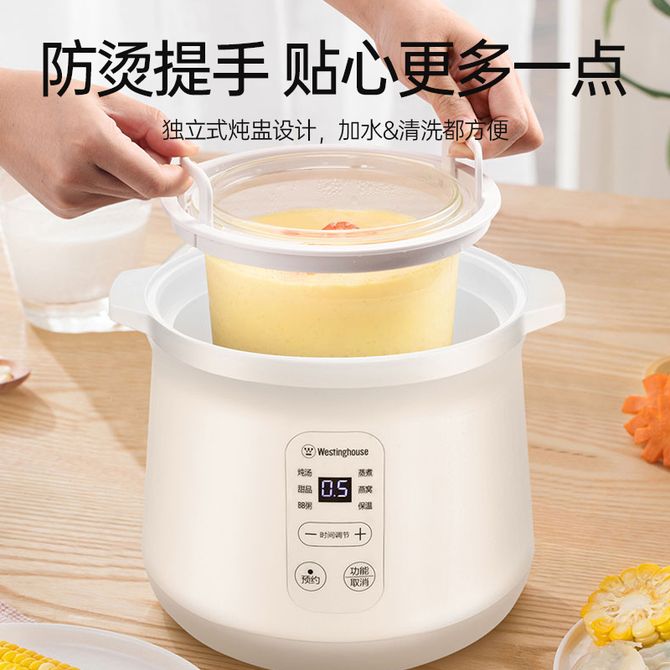 西屋(Westinghouse)电炖锅 电炖盅 隔水炖锅 煲汤锅 燕窝炖盅 炖汤锅 煮粥锅熬粥养生可预约定时 WDZ-121 【可预约定时!智能煎炸!智能菜单!】 【1.2L大容量!防干烧、自动保温!】 兑换价格 9100 里程 会员卡别 终身白金卡 白金卡 金卡 银卡 普通卡 儿童卡 商品已下架 1. 请联系卖家咨询 2. 逛逛北京致诚博雅贸易有限公司选择其他商品 组合销售 产品介绍 产品规格 售后服务 产品咨询 发现好货 小熊/Bear 电炖锅1-2人小炖锅煮粥锅智能预约定时煲汤锅炖汤锅燕窝炖盅 4400 里程 苏泊尔(SUPOR) 电火锅家用不粘煎涮炖煮多功能4L大容量一体式大火力电煮锅不粘煎涮炖煮多功能料理锅 H40YK757 5700 里程 西屋/Westinghouse 多功能电煮锅电炖锅1.6L一锅多能WFB16A 11600 里程 苏泊尔(SUPOR) 电火锅 宿舍小电锅学生寝室一体泡面小火锅 多功能锅涮肉涮菜 1.7L 【 单锅】H17YK489 3000 里程 小熊(Bear)电炖锅电炖盅煮粥神器煲汤锅炖汤锅婴儿煮粥锅熬粥燕窝炖盅DDG-E15K2 4800 里程