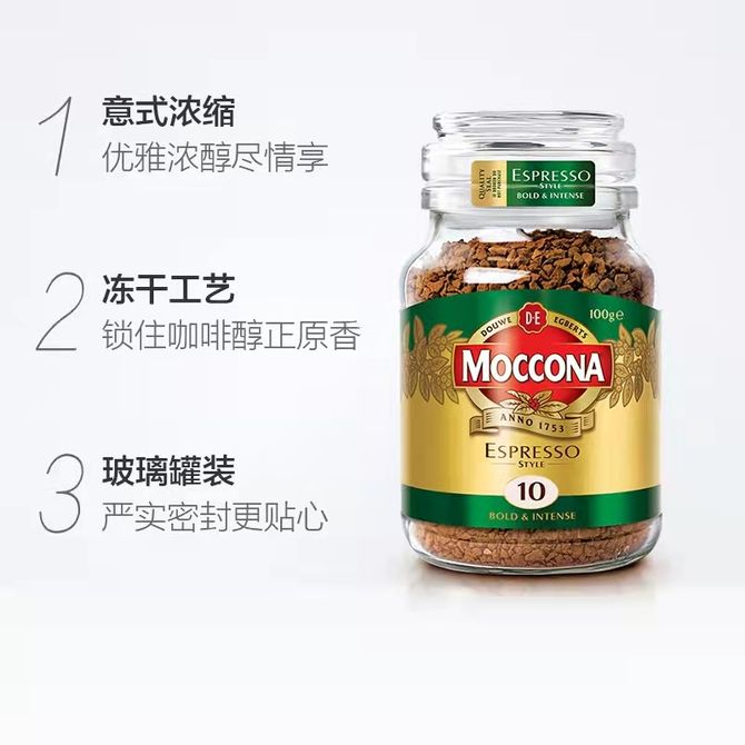 摩可纳Moccona 10号意式浓缩 冻干黑咖啡 100克*2罐