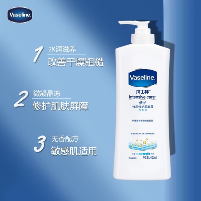 凡士林(Vaseline)倍护特润身体乳 无香修护大白瓶400ml 润肤止痒敏感肌适用