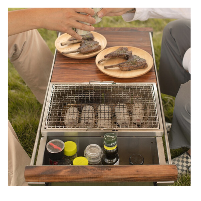 挪客(NatureHike)不锈钢折叠烧烤架 户外烧烤炉木炭烤串单人烤肉用具