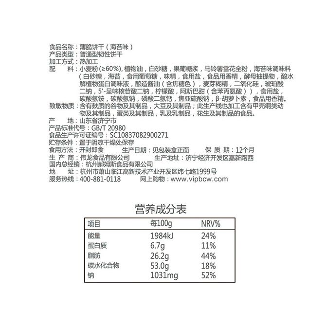 百草味 薄脆饼干308g*3袋 海苔味 休闲零食早餐饼干 海苔饼干 休闲小零食 薄脆饼干308g*3袋 海苔味 新老包装随机发 兑换价格 4200 里程 会员卡别 终身白金卡 白金卡 金卡 银卡 普通卡 儿童卡 服务 由 中优盈信品质生活馆 发货并提供售后 规格: 盒装 购买数量: 件 库存件 配送地址: 立即购买 加入购物车 成功添加到购物车 关闭 购物车共有 种商品 总金额为: 组合销售 产品介绍 产品规格 售后服务 产品咨询 发现好货 西域美农 雪花山楂条 200g*2袋装 1100 里程 稻香村 桃酥640g 老式宫廷饼干 点心传统糕点 1600 里程 稻香村 蜂蜜蛋糕330g/袋*2 糕点 小吃 早餐食品 稻香村蜂蜜蛋糕 早餐面包蛋糕 1300 里程 鲜记 每日坚果7日装140g 混合坚果果干坚果炒货孕妇营养健康休闲零食坚果礼盒 1300 里程 【西域美农 买一赠一】新品无花果夹核桃仁 买250g/袋 赠250g/袋 3500 里程