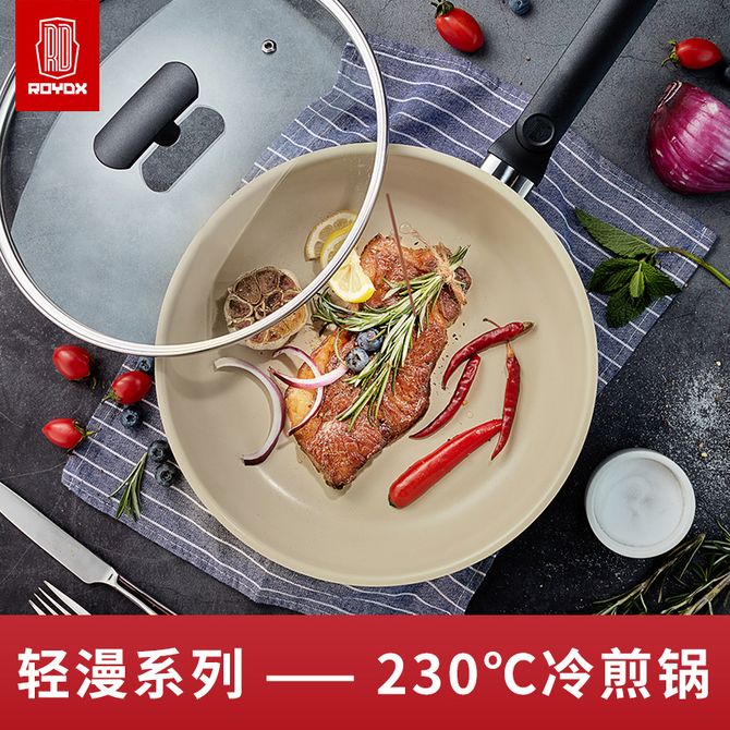 莱德斯(ROYDX) 轻漫系列230°C冷煎锅 G16101A 不锈钢不粘无油烟平底锅 玻璃盖牛排煎蛋锅平底锅煎锅 电磁炉燃气灶适用 锅底采用3层复合底结构,锅底采用独家核心技术TH1新型黑科技材料,有效控温,细节之处见品质;锅内喷3层欧版白金冷煎软釉,稳定性高,耐磨损,健康不粘,烹饪体验佳 兑换价格 24000 里程 会员卡别 终身白金卡 白金卡 金卡 银卡 普通卡 儿童卡 商品已下架 1. 请联系卖家咨询 2. 逛逛广智吉通厨具用品专营店选择其他商品 组合销售 产品介绍 产品规格 售后服务 产品咨询 发现好货 炊大皇(COOKER KING) 星空不粘煎锅 26cm不带盖 WG41357 平底锅家用无油烟 2200 里程 苏泊尔(SUPOR)j火红点不粘锅 平底锅煎锅炒锅 电磁炉燃气炒菜锅牛排煎蛋锅PJ28R4 7700 里程 张小泉 锤纹精铁煎锅26cm家用不粘锅煎蛋锅煎牛排平底锅煎锅 3000 里程 张小泉 正品平底锅26cm家用不粘锅煎锅 无涂层锤纹精铁煎锅C32850100 3000 里程 九阳/Joyoung 煎锅平底锅不粘锅家用24cm小煎锅煎蛋饼牛排煎锅JLW2401 2200 里程