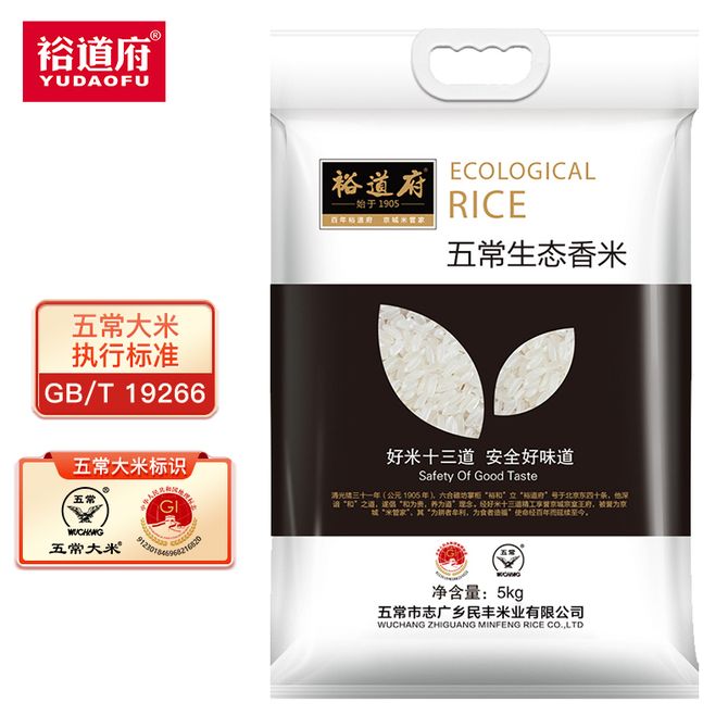 裕道府 五常生态香米5kg 当季新米 东北五常粳米 东北大米 香米10斤
