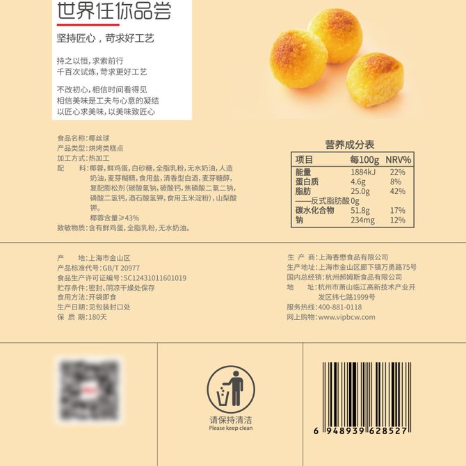 百草味 椰丝球120g*10袋 早餐椰蓉小面包 下午茶糕点休闲饱腹小零食 椰丝球120g*10袋 新老包装随机发 兑换价格 6800 里程 会员卡别 终身白金卡 白金卡 金卡 银卡 普通卡 儿童卡 服务 由 中优盈信品质生活馆 发货并提供售后 规格: 袋装 购买数量: 件 库存件 配送地址: 立即购买 加入购物车 成功添加到购物车 关闭 购物车共有 种商品 总金额为: