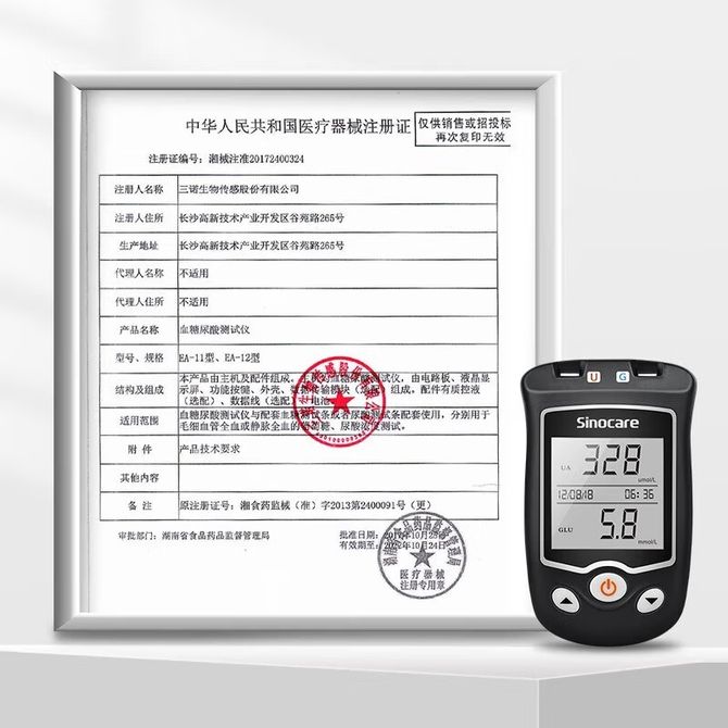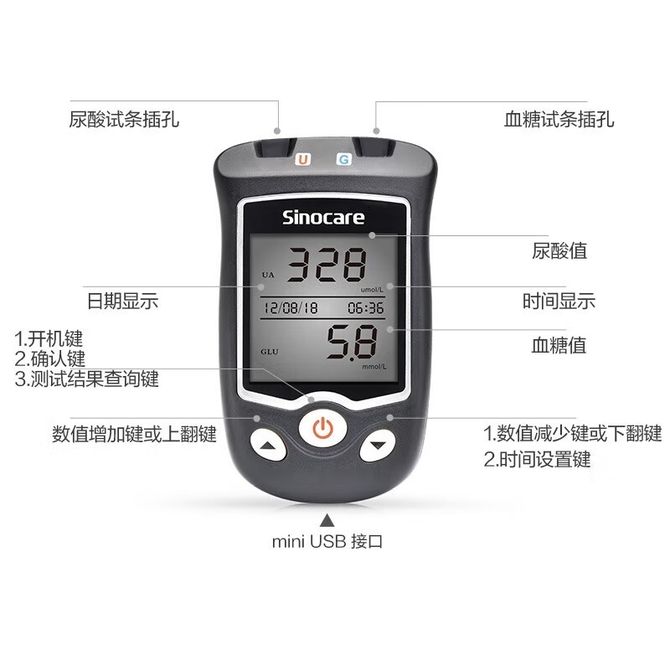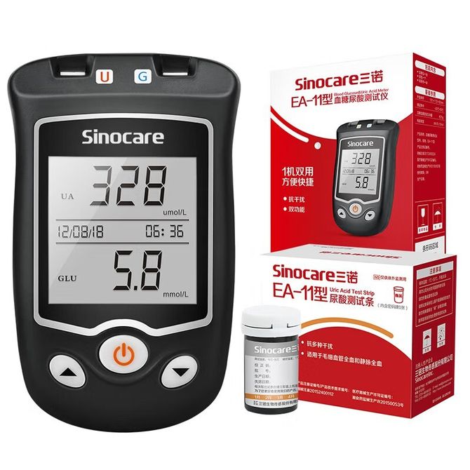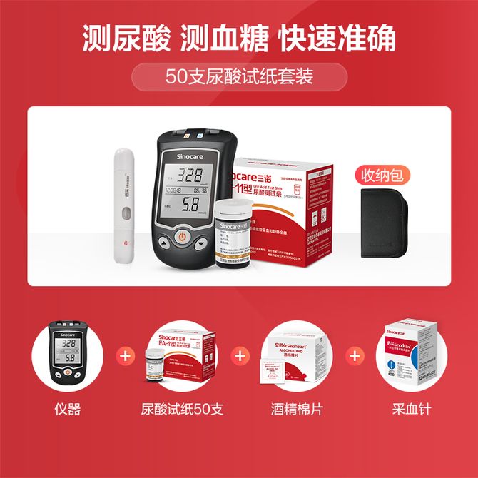 三诺(Sinocare)血糖尿酸测试仪家用检测仪50支尿酸试条套装仪器+50支尿酸试纸+送采血针酒精棉