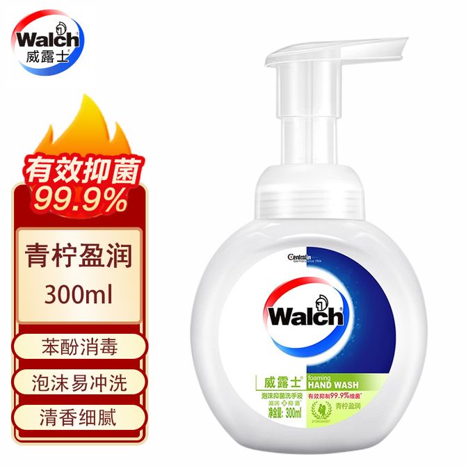 威露士Walch 泡沫抑菌洗手液(青柠盈润)300ml 抑菌消毒99.9% 保障家人健康 泡沫丰富易冲洗