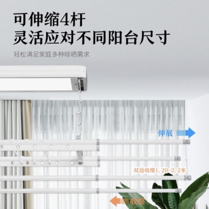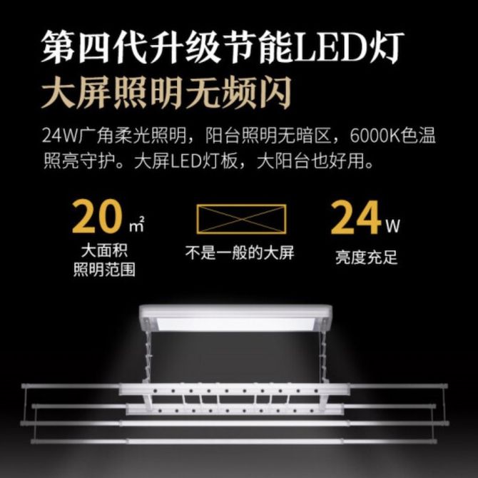 阳台折叠晾衣机 大屏照明 离线声控遥控升降 4杆伸缩衣杆被杆 带6根母婴杆