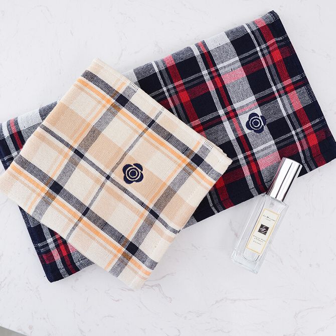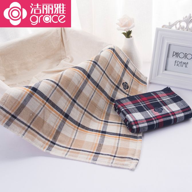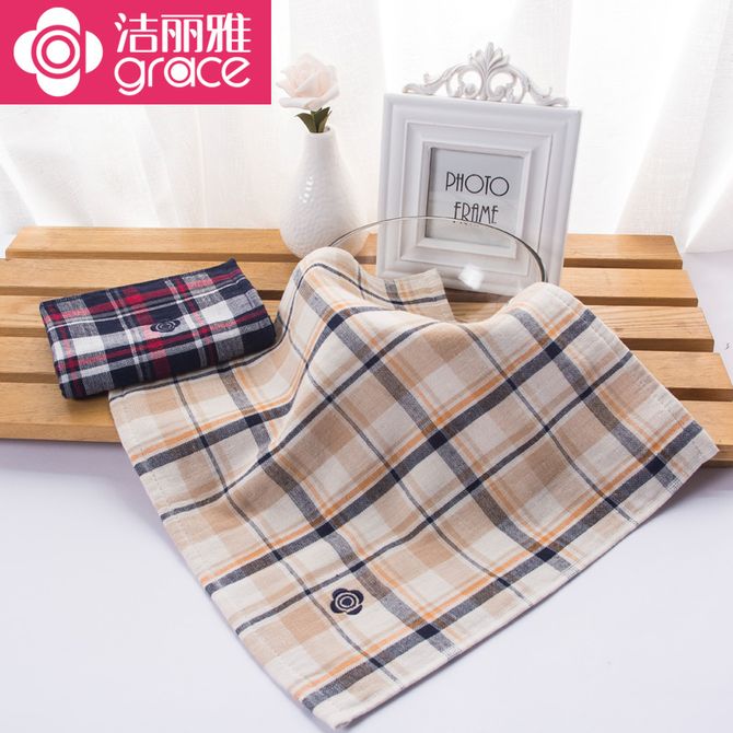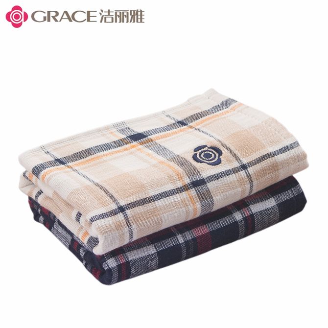洁丽雅(Grace) 毛巾2条装 纯棉方巾 全棉成人男女士素色擦汗巾 米色+兰色 34*34cm