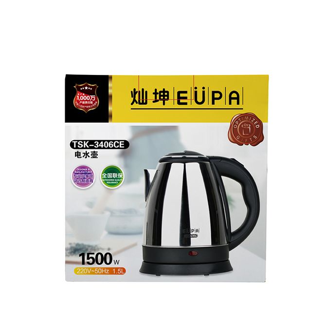 灿坤 EUPA 悦活·电水壶 TSK-3406CE 品质温控器 防干烧 快速加热 兑换价格 4400 里程 会员卡别 终身白金卡 白金卡 金卡 银卡 普通卡 儿童卡 商品已下架 1. 请联系卖家咨询 2. 逛逛力瀚网络家电店铺选择其他商品 组合销售 产品介绍 产品规格 售后服务 产品咨询 发现好货 苏泊尔(SUPOR)电水壶 1.7L 不锈钢/YL SW-17S13A 5700 里程 志高/Chigo 电水壶烧水壶1.8L大容量电热水壶双层防烫自动断电家用烧水开水壶不锈钢 电水壶 DC-A18F 1900 里程 美的/Midea 电热水壶家用大容量烧水壶热水壶双层防烫电水壶304不锈钢内胆自动断电分离式拔盖 MK-SH15X1-102 3000 里程 小熊/Bear 电水壶家用烧水壶 不锈钢自动断电恒温热水壶保温一体电热水壶1.5L容量 3500 里程 小熊/Bear 烧水壶电水壶热水壶电热水壶开水壶304不锈钢内胆双层防烫1.5L大容量ZDH-Q15U8 3000 里程