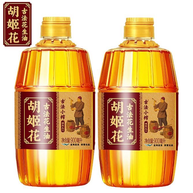胡姬花花生油 古法小榨花生油900ml×2瓶