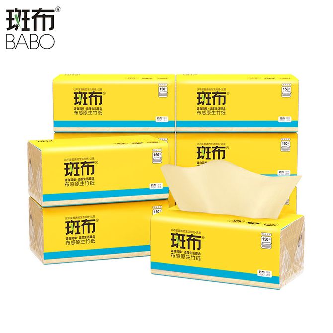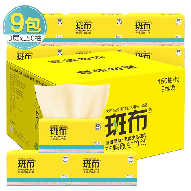 斑布(BABO)本色抽纸 BASE系列 3层150抽面巾纸抽纸9包(大规格)整箱销售(本色抽纸 竹纤维无漂白)