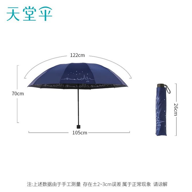 天堂伞 雨伞男女晴雨两用伞 双人十骨全钢加大加固伞抗风黑胶遮阳伞 三折伞 31157E城市星空 黛蓝色 伞骨10 伞下直径105 伞高70cm 全钢骨架 雅仕黑胶伞布 防护系数UPF50+ 兑换价格 3900 里程 会员卡别 终身白金卡 白金卡 金卡 银卡 普通卡 儿童卡 商品已下架 1. 请联系卖家咨询 2. 逛逛陈记严选选择其他商品 组合销售 产品介绍 产品规格 售后服务 产品咨询 发现好货 天堂伞 加大雨伞三折 晴雨两用商务伞10骨大雨伞男女 30721EJDX岩石蓝 1600 里程 雨景/rainscape 简约十骨大号男士三折雨伞 折叠伞 男女商务晴雨伞65CM*10骨 2200 里程 雨景/rainscape 男士全自动商务雨伞 十骨全自动晴雨伞 折叠商务伞 两用双人超大加固防风三折伞 4400 里程 美度(MAYDU) 三折自动雨伞环扣便挂手柄加固防风简约清新配色反向折叠雨伞 2800 里程 天玮伞业/Tianwei umbrella 雨伞 六折防晒防紫外线太阳伞 迷你便携小巧遮阳伞 1500 里程