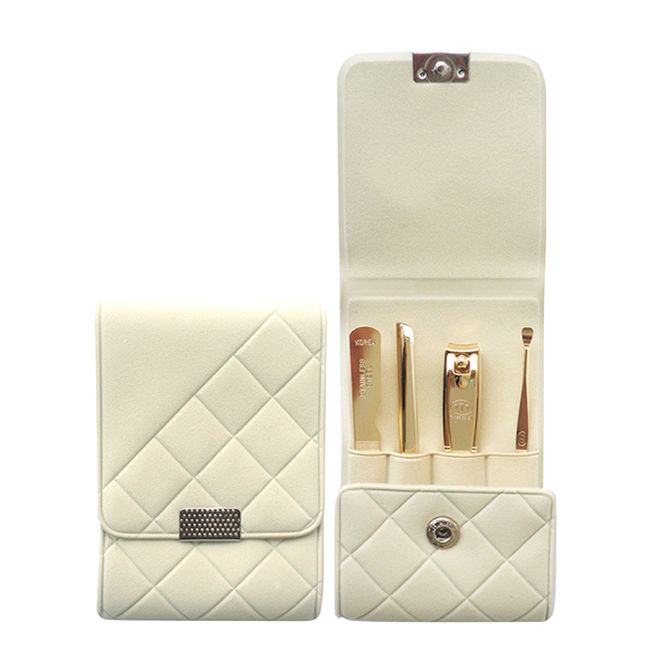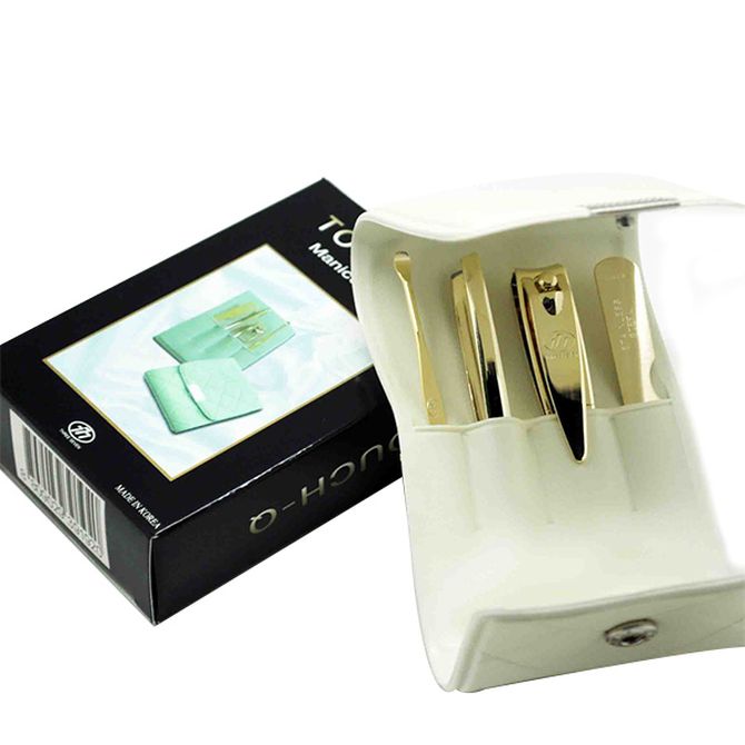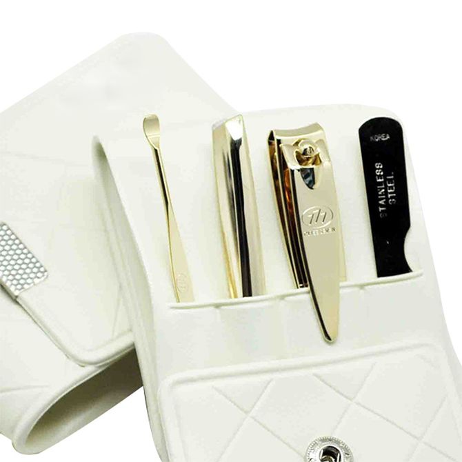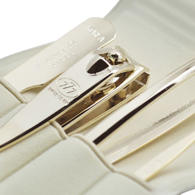 韩国777 原装进口时尚指甲刀套装 镀金色指甲剪指甲钳修容美护美甲修甲4件套DS-8503G白色皮套