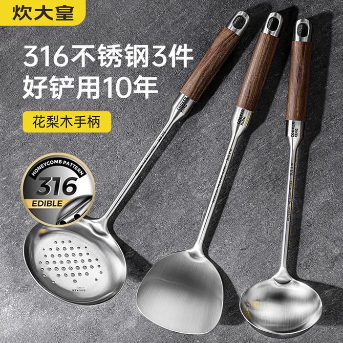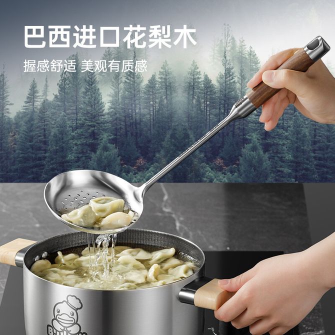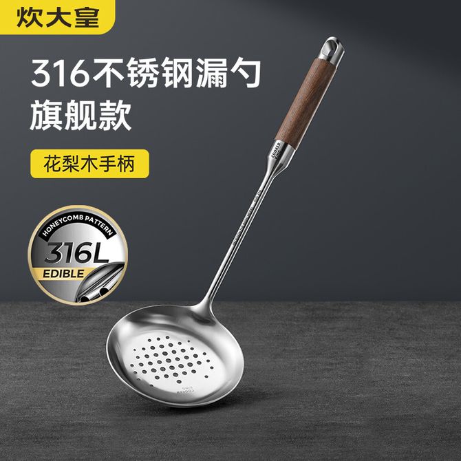 炊大皇花梨木不锈钢漏勺加厚漏勺子铁锅不锈钢锅无涂层锅漏勺GC07HL