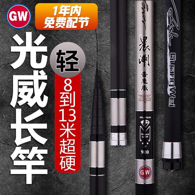 光威鱼竿晨湖超轻超硬长竿钓鱼竿碳素鱼杆手竿钓鱼炮竿打窝杆传统钓手竿渔具 10米晨湖普惠版送前三节+硬梢+竿筒