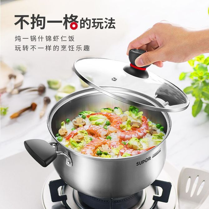 苏泊尔(SUPOR)汤锅 304不锈钢复底加厚煮锅奶锅小红圈炖汤锅 电磁炉燃气通用 20cm ST20H1 小红圈盖头贴心防烫 加高锅身安全不溢汤 导热快且均匀不易糊底 1-2人使用 兑换价格 5600 里程 会员卡别 终身白金卡 白金卡 金卡 银卡 普通卡 儿童卡 服务 由 成都得之悦电子商务有限公司 发货并提供售后 颜色: 银色 购买数量: 件 库存件 配送地址: 立即购买 加入购物车 成功添加到购物车 关闭 购物车共有 种商品 总金额为: 组合销售 产品介绍 产品规格 售后服务 产品咨询 发现好货 拜格 带磁不锈钢28CM单层汤蒸锅 BG1197 2000 里程 德铂(Debo) 弗伦斯堡不锈钢汤锅炖锅20cm电磁炉通用 DEP-179 2600 里程 康宁visions晶彩系列透明锅琥珀色玻璃锅耐热可明火汤锅炖锅 1.25L晶彩锅VS-12-E-LCL/ZK 10500 里程 拜格奶锅配蒸格 宝宝辅食锅汤锅不锈钢加厚电磁炉燃气通用蒸锅泡面锅 BG1354 2100 里程 拜格(Bayco) 不锈钢带蒸格小奶锅16cm 婴儿辅食锅 汤锅煮面锅 燃气电磁炉通用 BG8198 1700 里程