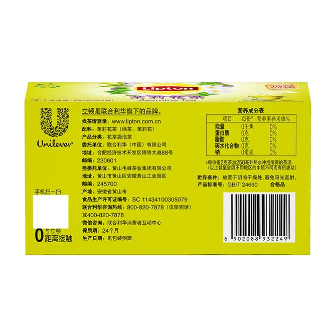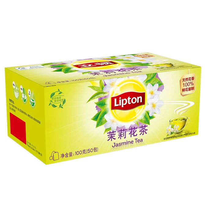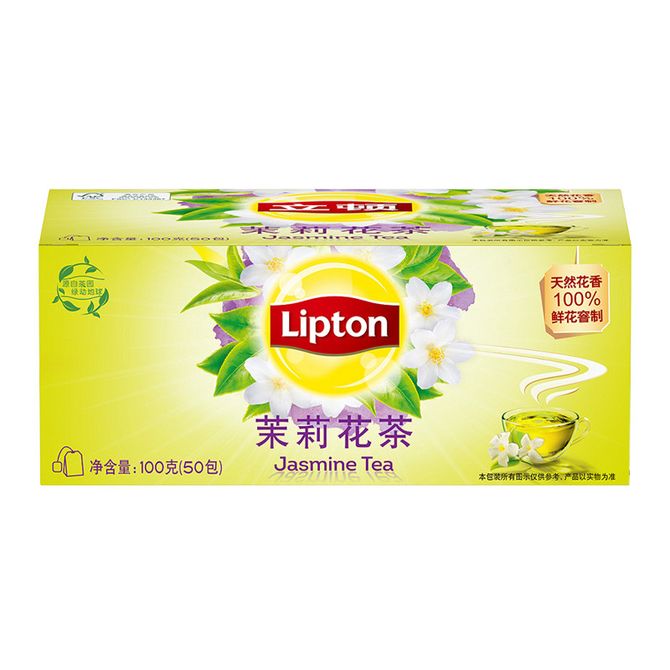 立顿Lipton 茉莉花茶 茶叶 办公室休闲下午茶 冲饮袋泡茶包2g*50