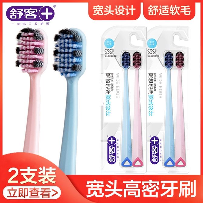 舒客 宽头高密旋洁软毛成人牙刷4支 (2支*2板)