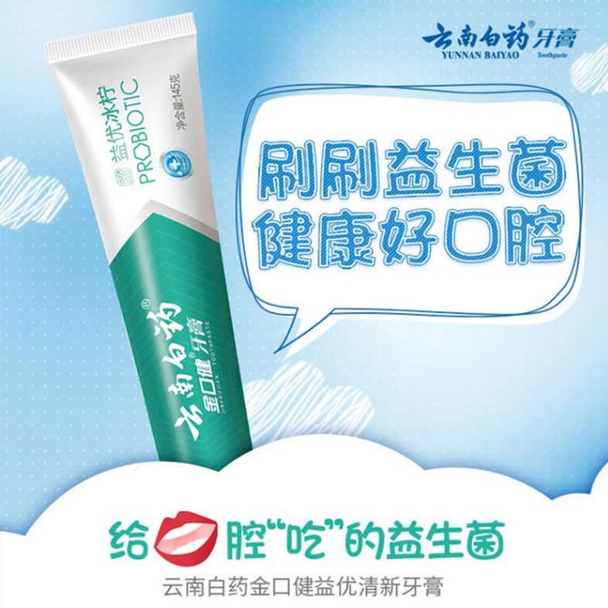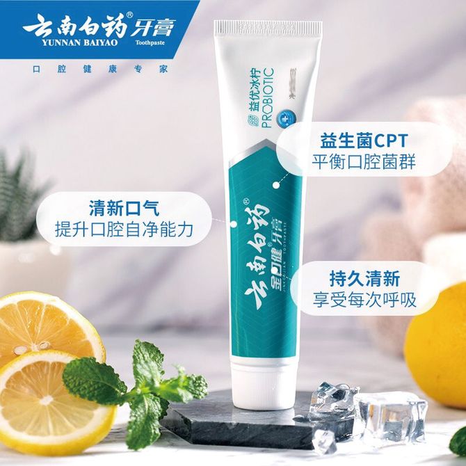 云南白药 金口健牙膏 益优冰柠 145g*5 益生菌清新口腔异味健白牙齿