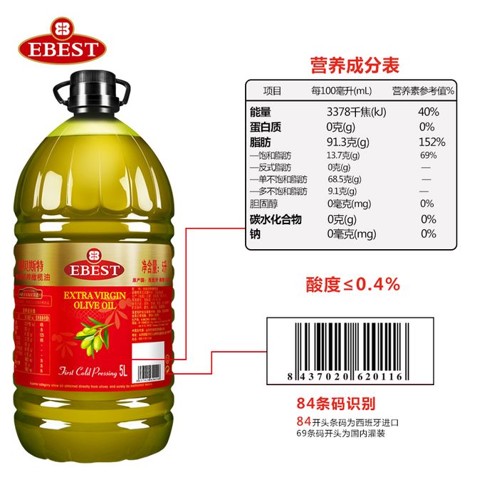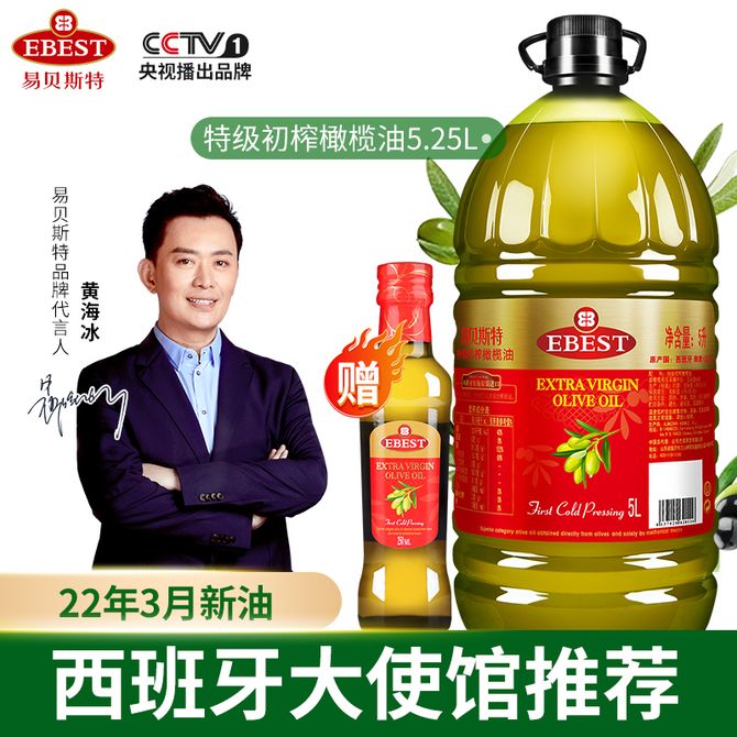 易贝斯特 特级初榨橄榄油5L桶装 家用olive食用油 西班牙进口