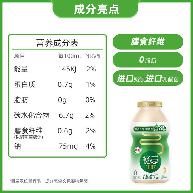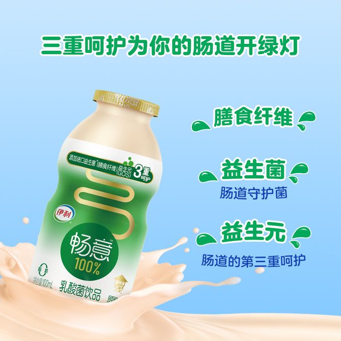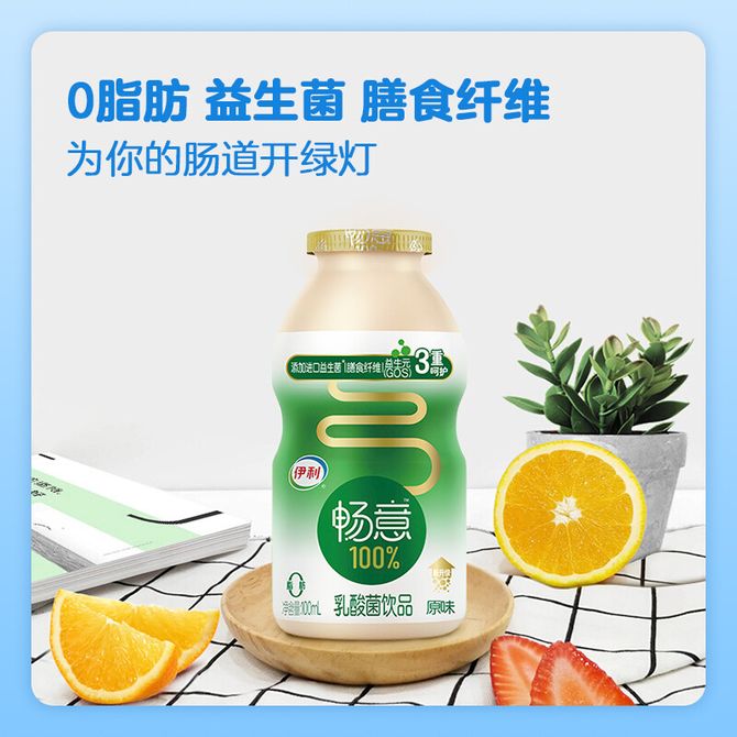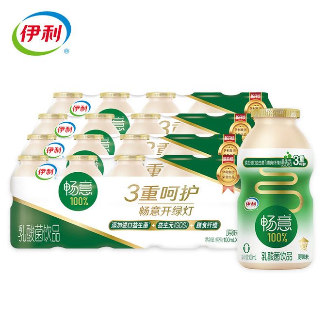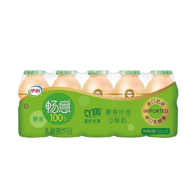 伊利 畅意100% 乳酸菌饮品100ml*20瓶装 (5瓶*4排 ) 膳食纤维 原味