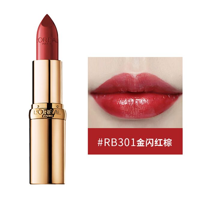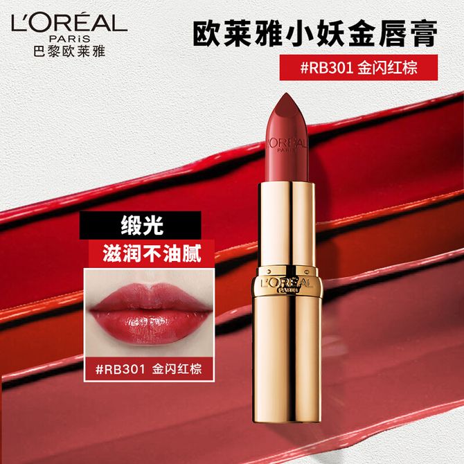欧莱雅(LOREAL)小妖金口红纷泽滋润唇膏 #RB301金闪红棕色 3.7g 滋润缎光镜面 显色百搭