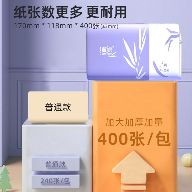 蓝漂 白色抽纸 18包装(紫色竹叶)