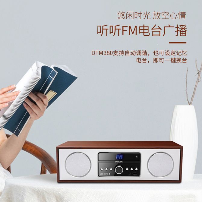 飞利浦(PHILIPS)音响 无线蓝牙播放器CD一体机迷你桌面台式收音家用 DTM380 典雅设计 实木箱体 HiFi音质 兑换价格 52200 里程 会员卡别 终身白金卡 白金卡 金卡 银卡 普通卡 儿童卡 服务 由 上海亨奈电器科技有限公司 发货并提供售后 颜色: 其他 购买数量: 件 库存件 配送地址: 立即购买 加入购物车 成功添加到购物车 关闭 购物车共有 种商品 总金额为: 组合销售 产品介绍 产品规格 售后服务 产品咨询 发现好货 漫步者(EDIFIER) R12U台式电脑音响低音炮手机迷你笔记本小音箱USB 台式/笔记本音响 支持USB 时尚外观设计 4000 里程 漫步者(EDIFIER) R10U台式/笔记本电脑USB小音箱 迷你音响 多媒体桌面数码低音炮 3500 里程 漫步者(EDIFIER) R101V多媒体有源音箱2.1声道电脑音响 桌面重低音炮 6500 里程 纽曼(Newmine)N63收音机半导体唱戏机评书戏曲插卡音箱音响 2200 里程 小米 小爱同学音箱Play基础款 AIoT语音控制 蓝牙Mesh网关 音乐小说智能音箱智能音响 4800 里程