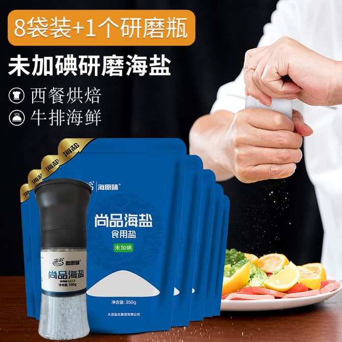 海湾粗盐食用海盐大颗粒研磨盐无添加无抗结剂食用盐350g*8+150g