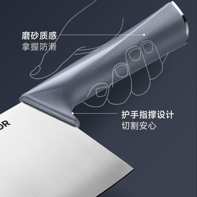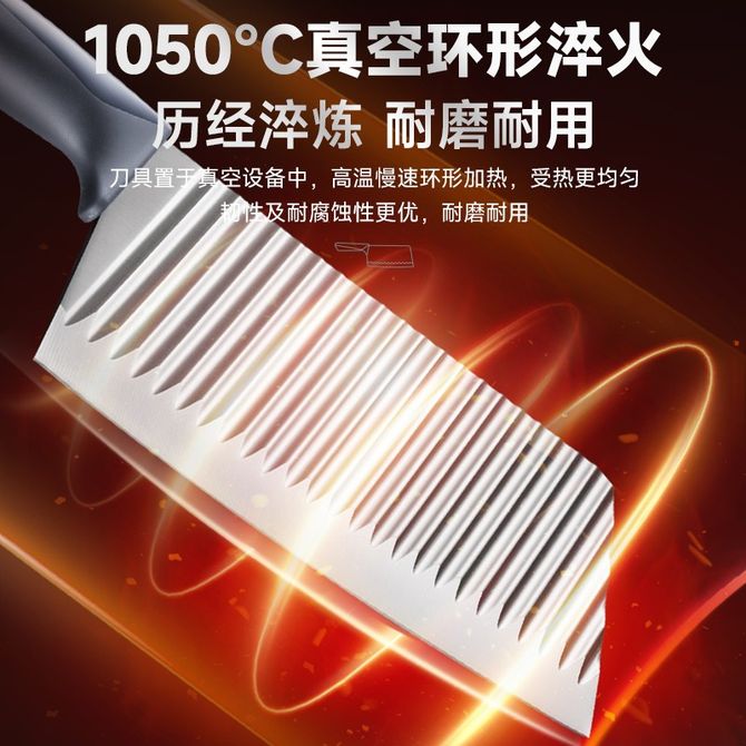黄金弧设计,切割不易粘,持久锋利,耐磨耐腐蚀。