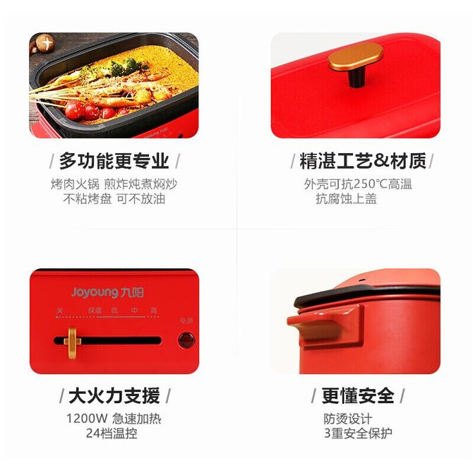 九阳(Joyoung) 电火锅多功能料理锅电烧烤肉盘火锅一体炒锅HG40-G721 24档温控,1200W快速加热,3重安全保护,全身防烫设计 兑换价格 21800 里程 会员卡别 终身白金卡 白金卡 金卡 银卡 普通卡 儿童卡 服务 由 弘济家电 发货并提供售后 颜色: 红色 购买数量: 件 库存件 配送地址: 立即购买 加入购物车 成功添加到购物车 关闭 购物车共有 种商品 总金额为: