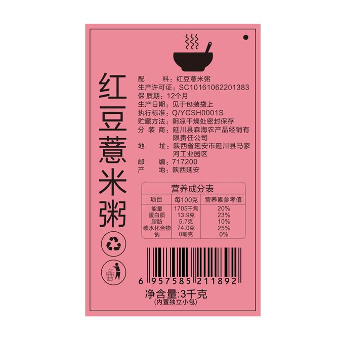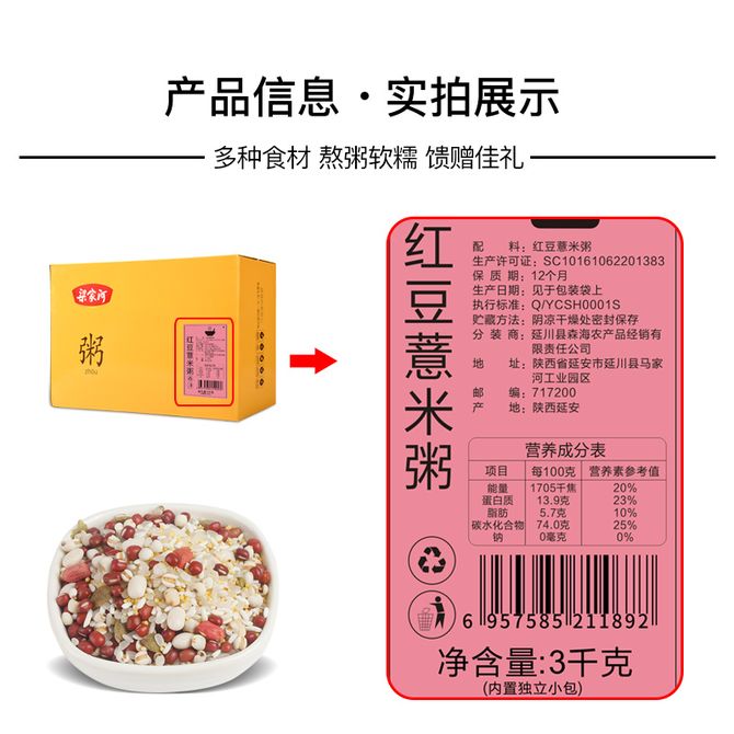 梁家河红豆薏米粥礼盒3kg