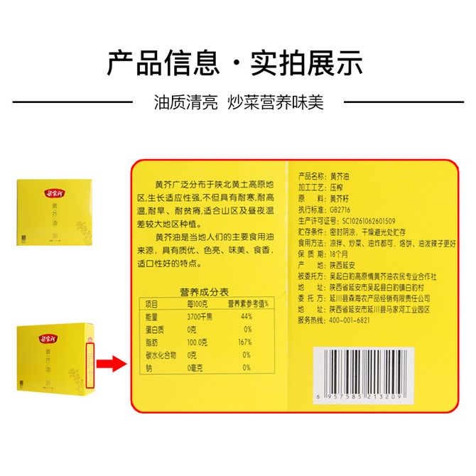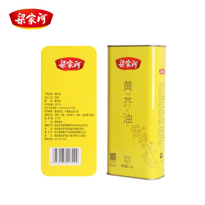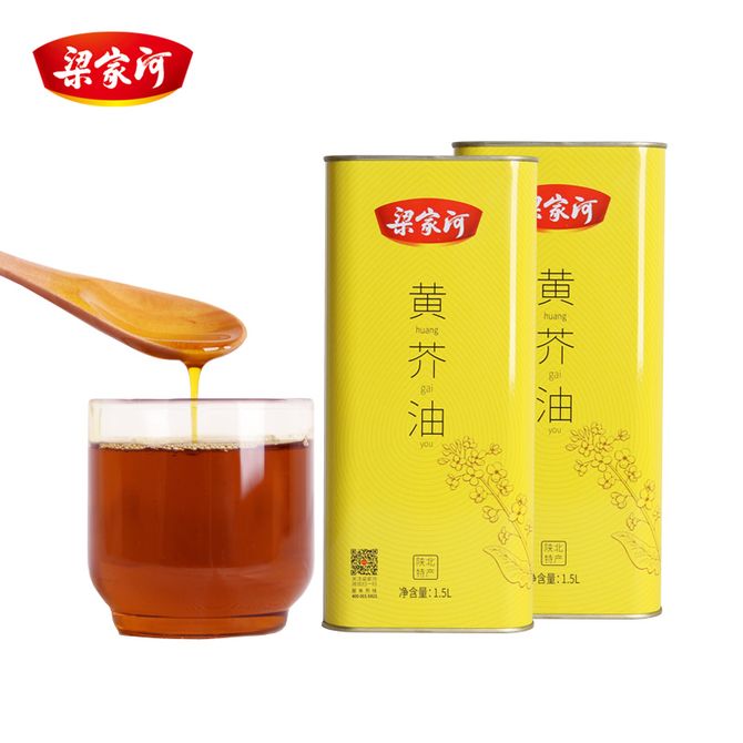 梁家河陕北特产黄芥油食用菜籽油黄芥籽压榨菜籽油食用油1.5L*2