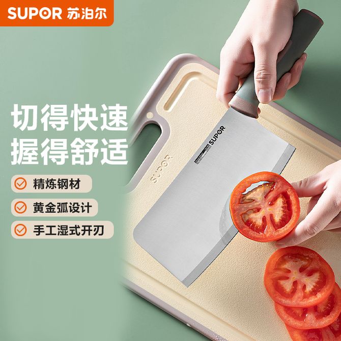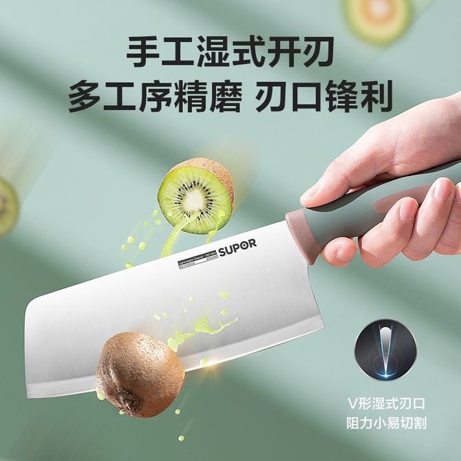 苏泊尔(SUPOR)厨房刀具家用菜刀厨房切片刀厨师斩切刀切菜切肉刀砍骨剁骨刀多用刀水果刀 软胶柄 切片刀KE-180BG1墨绿 软胶柄切片