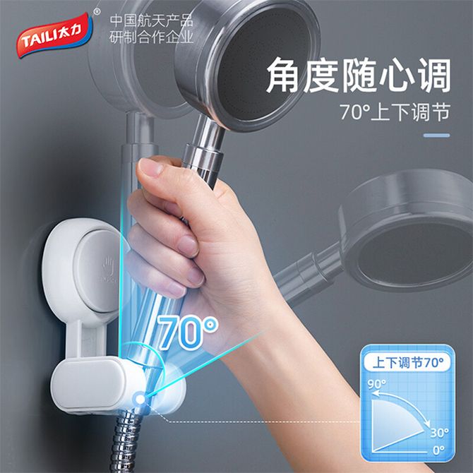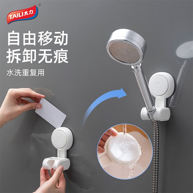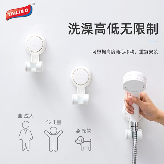 太力/TAILI 花洒支架免打孔儿童淋浴喷头支架吸盘花洒底座固定器挂座多档可调节莲蓬头支架 1个装 AW682
