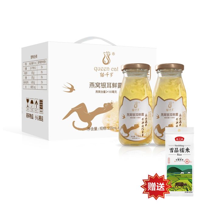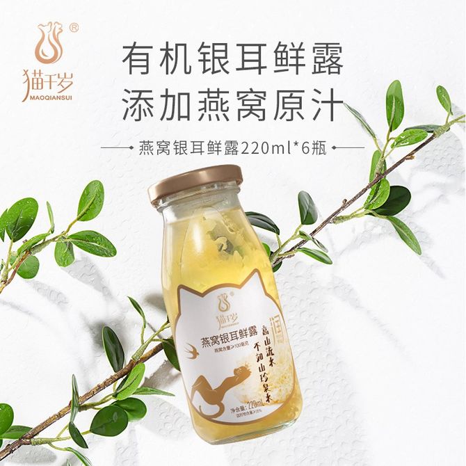 猫千岁 燕窝银耳鲜露220ml*6瓶 鲜炖燕窝银耳羹 冰糖红枣枸杞汁早餐营养滋补饮品 赠 雪晶糯米435g