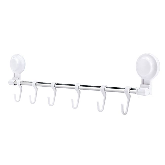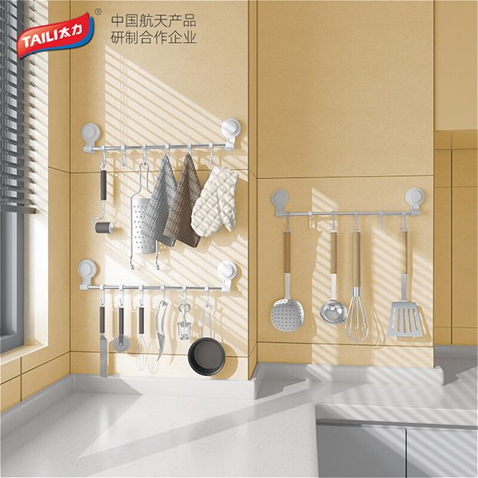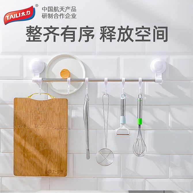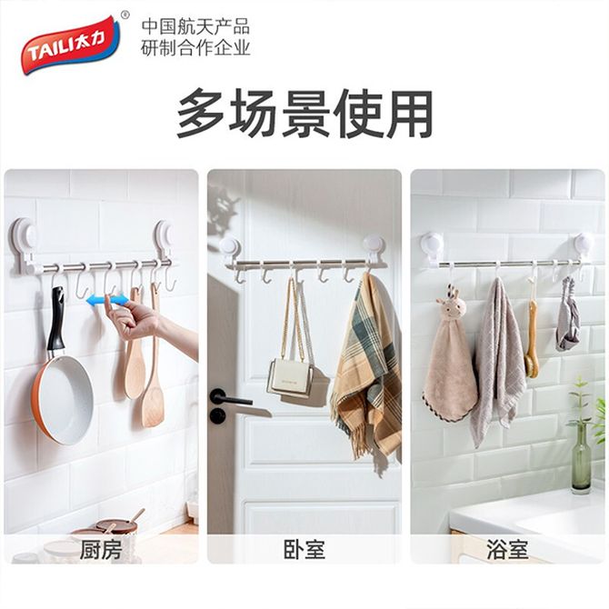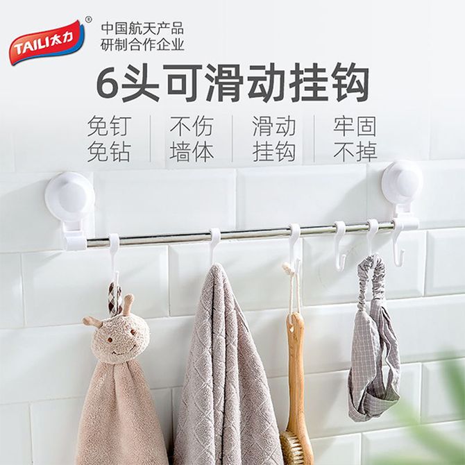 太力/TAILI 毛巾架免打孔吸盘挂钩厨房挂杆无痕卫生间浴室置物架壁挂毛巾架 带6挂钩 不锈钢 1个装 AW539