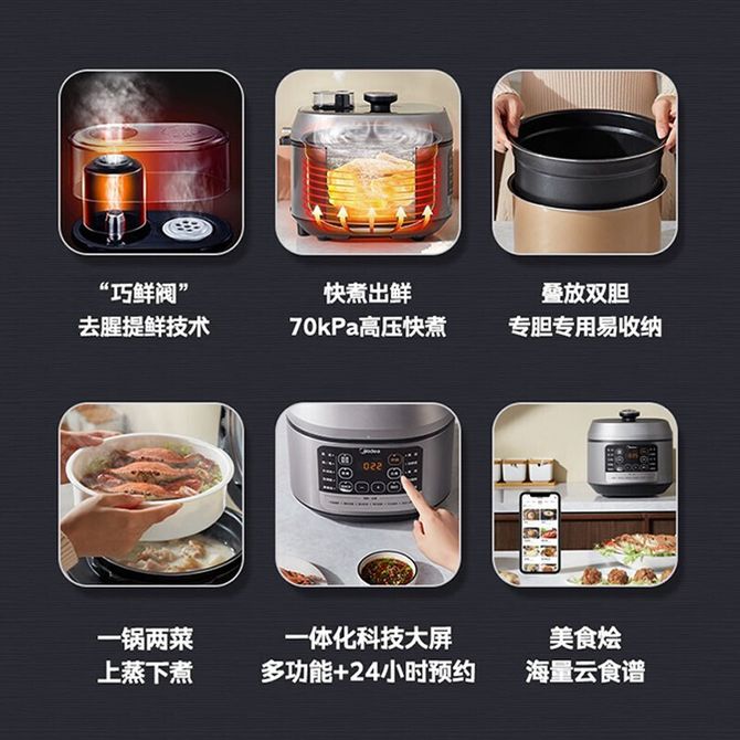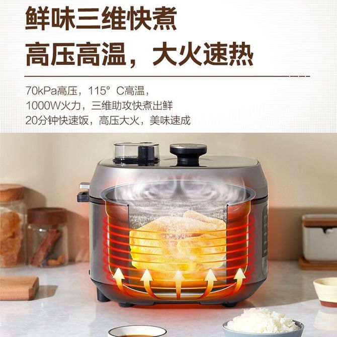 组合销售 产品介绍 产品规格 售后服务 产品咨询 发现好货 苏泊尔(SUPOR)电压力锅 6升大容量 智能触控 球釜双胆 开盖收汁 一键排压 SY-60YC8001Q 高压锅 16900 里程 美的/Midea 电压力锅家用5L大容量多功能高压锅双胆一键收汁智能预约不粘电高压锅电饭锅煮粥煲汤锅 一锅双胆【一键收汁入味】 YL50M1-702 10600 里程 苏泊尔(SUPOR) 5L电压力锅家用电高压锅双胆高压电饭锅煮饭智能预约 SY-50YC8186 11300 里程 美的/Midea 电压力锅 【一锅双胆】5L全自动家用智能预约 上蒸下煮 不粘双胆煲汤炖肉 YL50Q3-451 10900 里程 美的/Midea 电压力锅 高压锅家用电压力煲智能预约电饭煲大容量多功能定时预约电饭煲3-8人单胆旋钮款4L MY-E4809 8700 里程