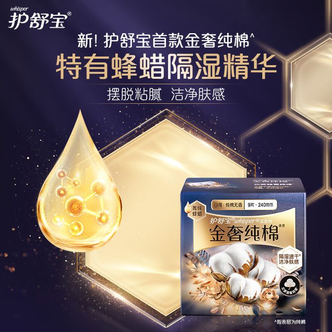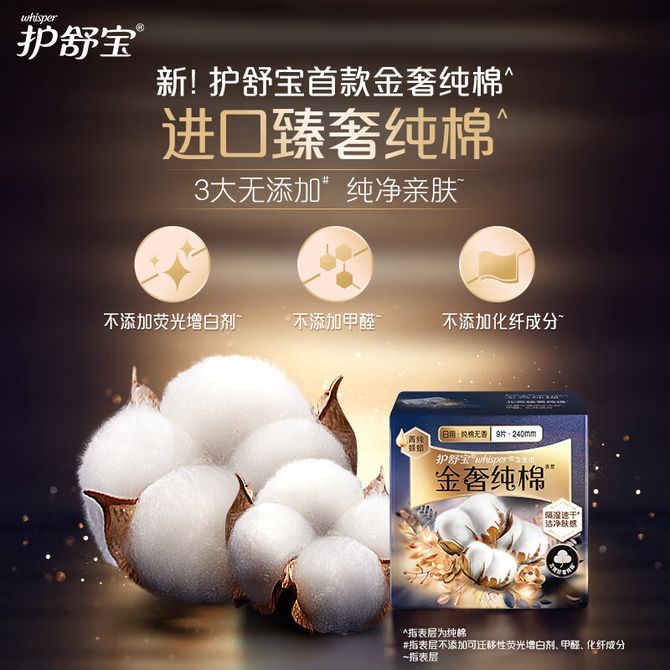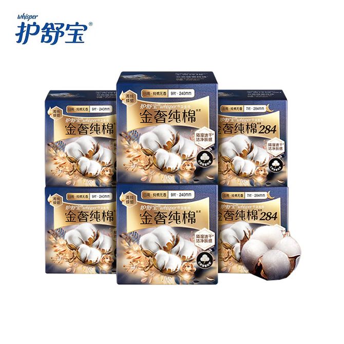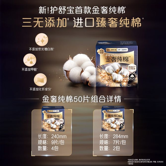 护舒宝新金奢纯棉卫生巾日夜组合装 50片(240mm*36片+284mm*14片) 极薄透气进口纯棉姨妈巾