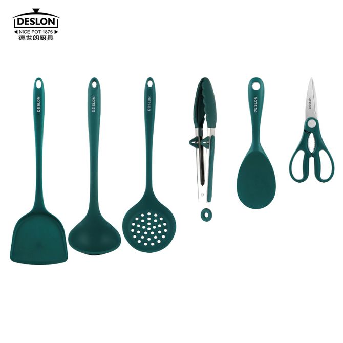 德世朗(DESLON)沁缘硅胶厨具六件套 家用汤勺漏勺饭勺捞面勺不粘锅护锅铲套装 DFS-TZ820-6A
