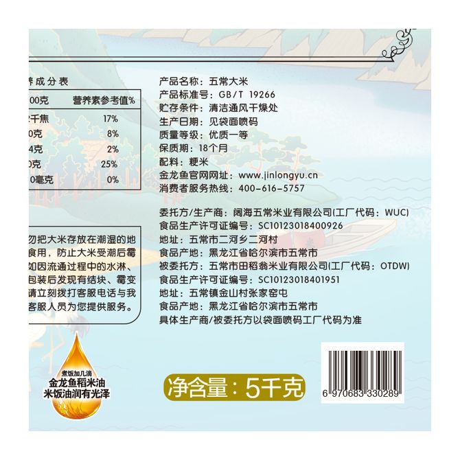 金龙鱼 五常大米 五常稻花香大米 东北大米 金玉稻香5kg