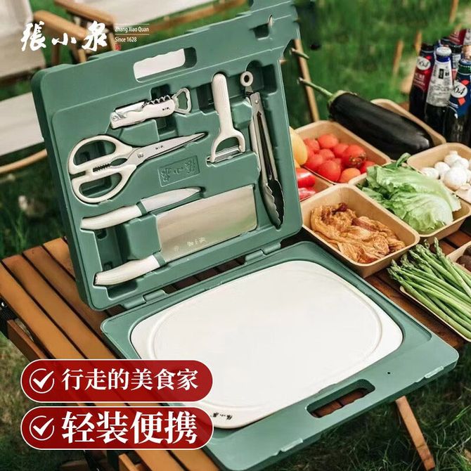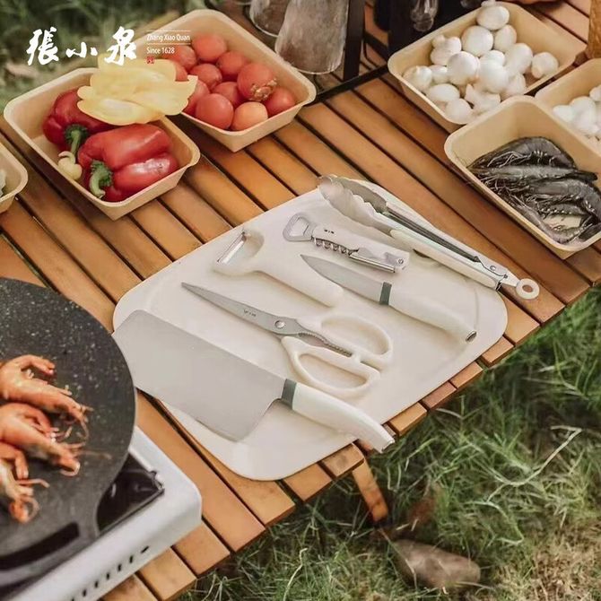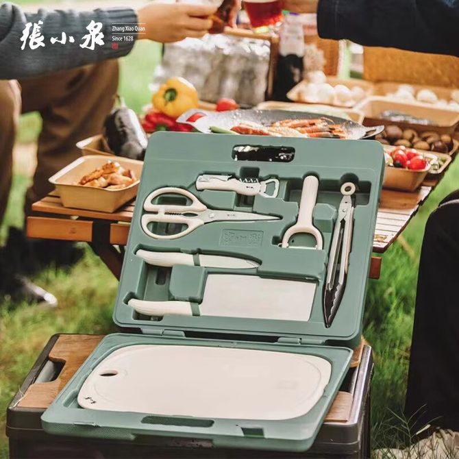 张小泉 套刀不止青绿系列户外厨具套装户外便携野餐炊具野营用品8件套