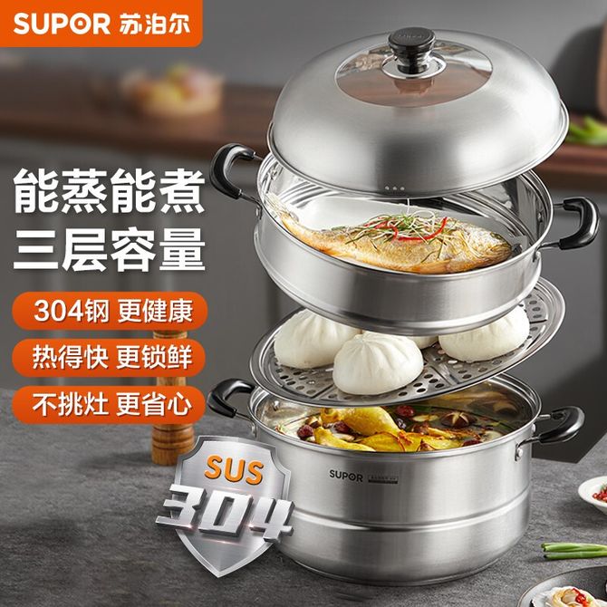 组合销售 产品介绍 产品规格 售后服务 产品咨询 发现好货 苏泊尔(SUPOR) 蒸锅不锈钢28cm复底双层SZ28B5蒸鱼蒸馒头蒸馍大蒸锅蒸笼 8700 里程 德铂(Debo)汤锅不锈钢单层蒸锅蒸笼电磁炉两用锅艾琳诺26cm DEP-DS146 2100 里程 拜格(Bayco) 蒸锅三层家用蒸馒头煲汤加厚汤锅BG1548【28cm】 3000 里程 炊大皇(COOKER KING) 304不锈钢三层蒸锅家用复合底汤锅蒸馒头包子可视可立高拱盖30cm 6100 里程 德铂(Debo) 科洛姆双层蒸锅不锈钢汤锅20cm不挑炉灶DEP-913 2600 里程