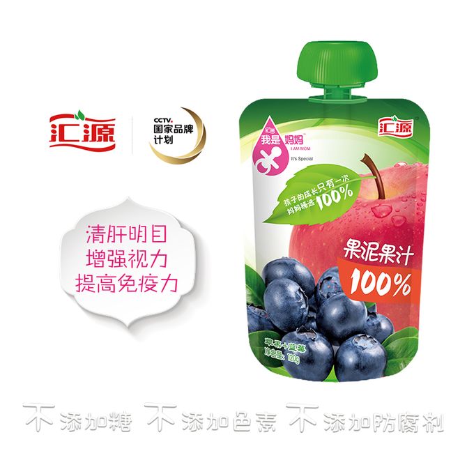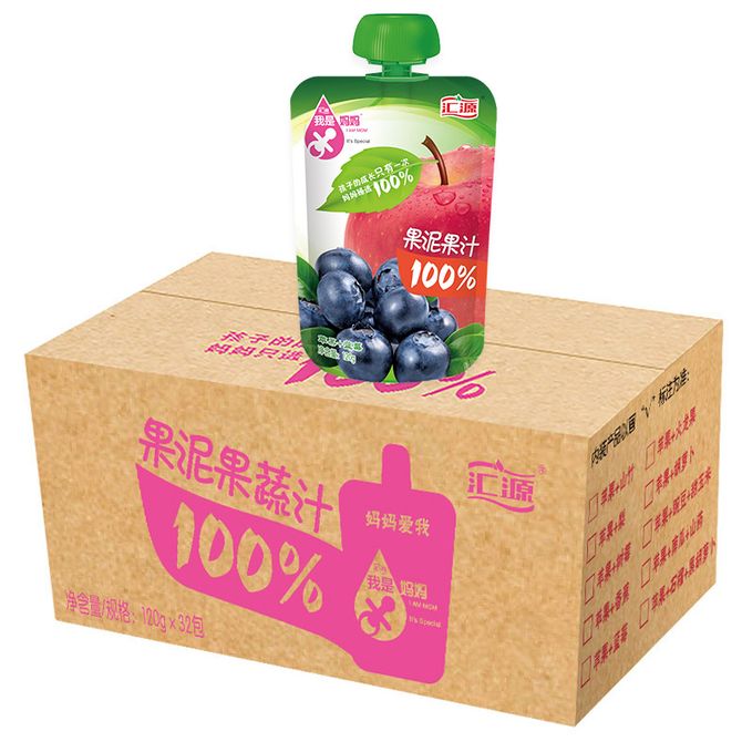汇源100%果泥果蔬汁120g苹果+蓝莓1×32包